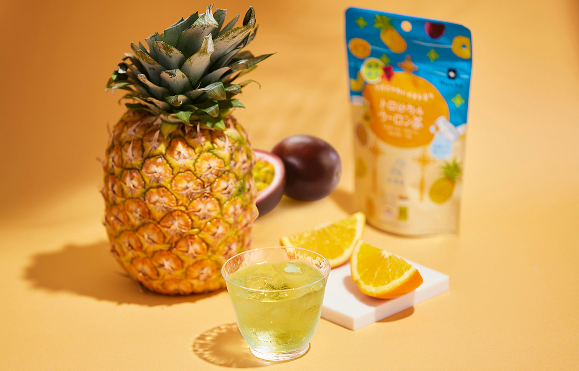 2.お茶の味わいと相性のいいパイン・パッションフルーツ・オレンジのフレーバーをブレンド