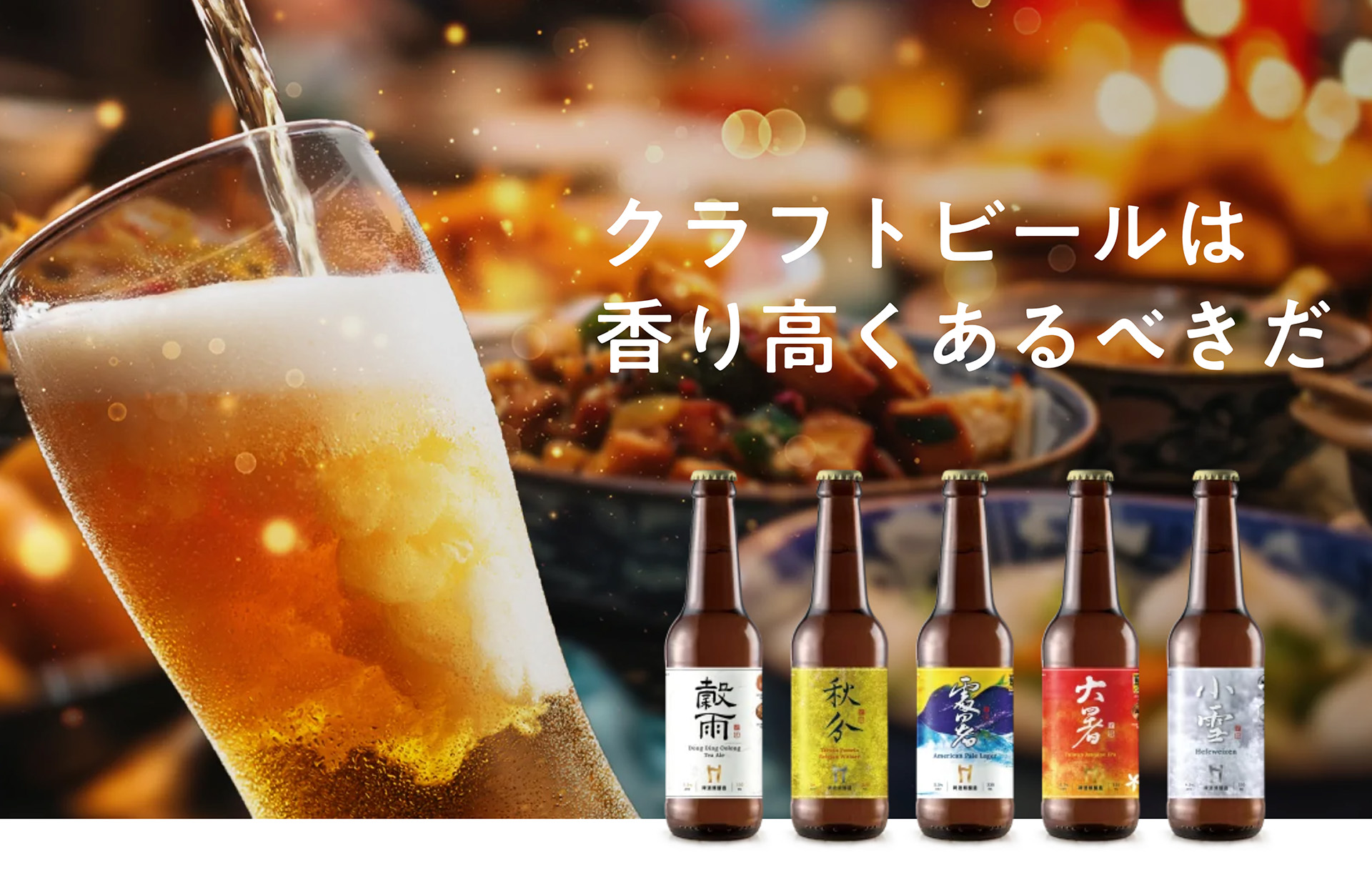 醸造所の代表商品の1 つで、世界的なビールアワードで数多くの受賞歴を誇る 「⼆⼗四節氣シリーズ」から、⽇本⼈の好みに合わせて厳選した5種類を販売しています。